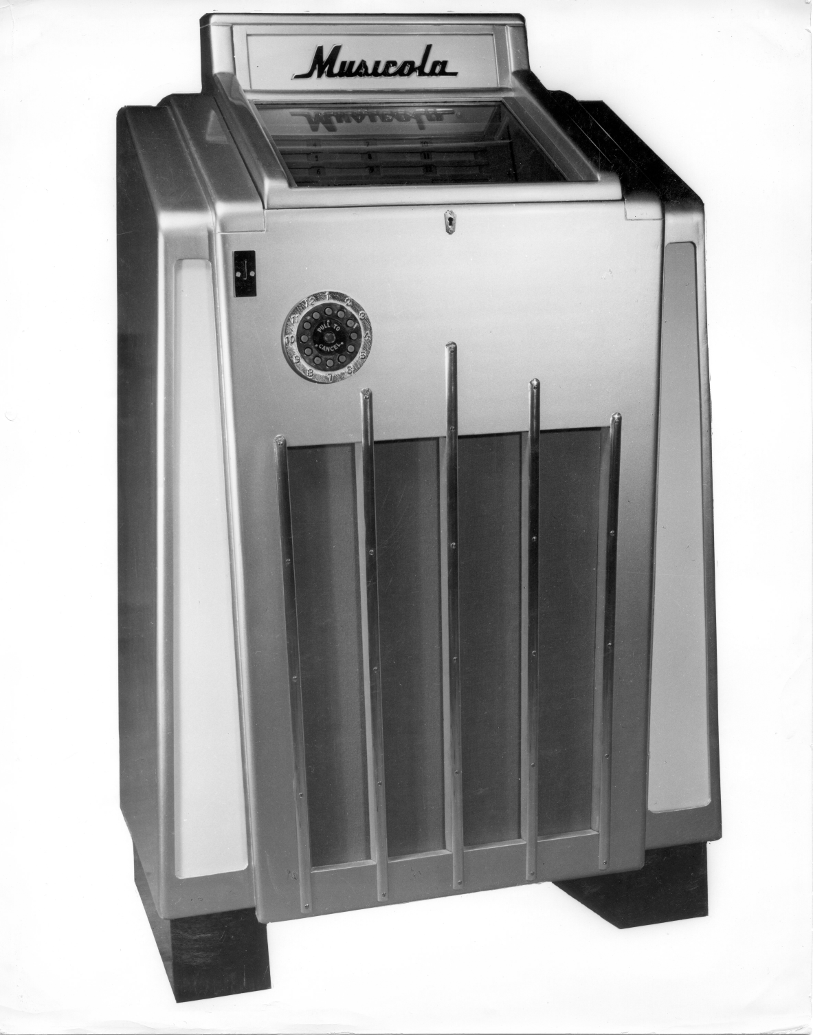 Musicola in chrome lettering was mounted on top of the machine attached to pink backlit perspex.