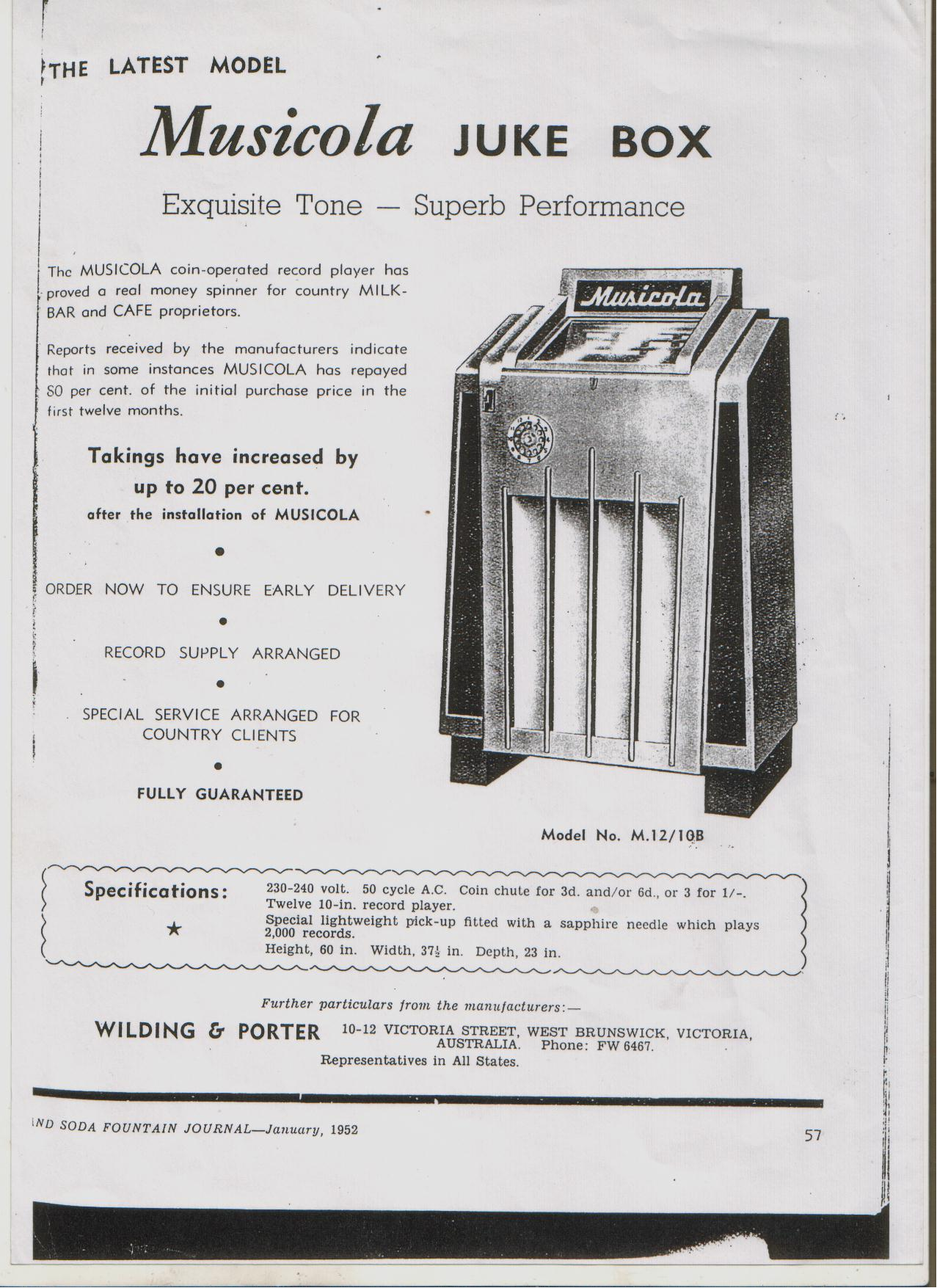 In 1951 the company released a new model called the Musicola M12/10B. It contained the same mechanism as the previous model, but featured a new taller cabinet design.